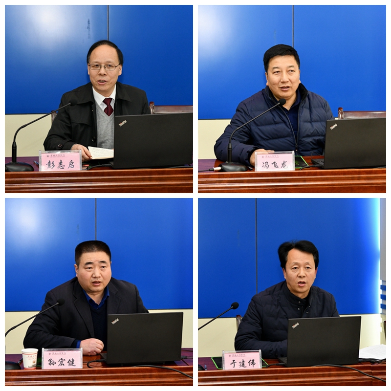 在2月22日的学习交流会上,党委统战部部长彭志启、党委宣传部部长冯飞龙、马克思主义学院院长孙宏健、政法学院党总支书记于建伟分别作了题为《做敢担当、能担当、善担当的干部》《整治形式主义与官僚主义,切实加强和夯实作风建设》《旗帜鲜明讲政治,凝心聚力育人才》《守住魂、扛起责、做成事》的分享交流。彭志启认为,“讲政治、敢担当、改作风”专题教育是提高干部政治站位、政治素养的“大学习”,是提升干部担当意识、担当能力的“大调研”,是促进干部夯实责任、推动工作的“大落实”,他从领导学和管理学的角度提出对“敢担当、能担当、善担当”的理解。冯飞龙用生动幽默、富含哲理、贴近现实的语言和图片,对形式主义和官僚主义进行画像,深刻剖析了形式主义和官僚主义的内涵、根源与危害。孙宏健从马克思主义政党发展实践分析,深刻阐述了新时代讲政治的主要内涵和基本要求,提出构建“三全育人”体系和大思政格局的工作举措。于建伟从“讲政治、敢担当、改作风”的深刻内涵切入,紧密结合基层党总支工作特点,对二级学院如何贯彻落实“讲政治、敢担当、改作风”提出了有效的工作思路和方法。