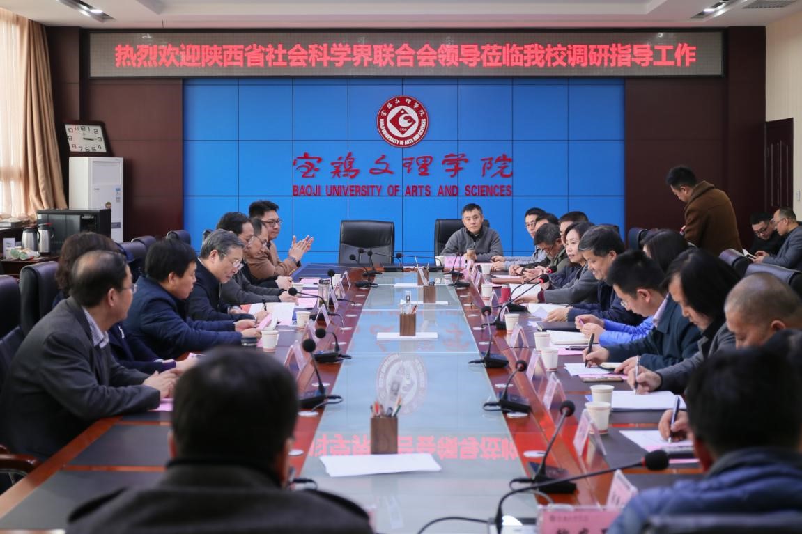 3月4日下午,陕西省社科界联合会主席甘晖、党组书记郭建树、宝鸡市社科联副主席霍海利、陕西省社科界联合会学会部副部长杜牧、科普部副部长刘瑛、办公室副主任张金高、《陕西社会科学》副主编杨曙明等一行7人来beat365官网围绕高校社科联建设工作开展调研活动,校党委书记白黎陪同实地考察,副校长王富平主持调研座谈会,副校长李景宜参加座谈。