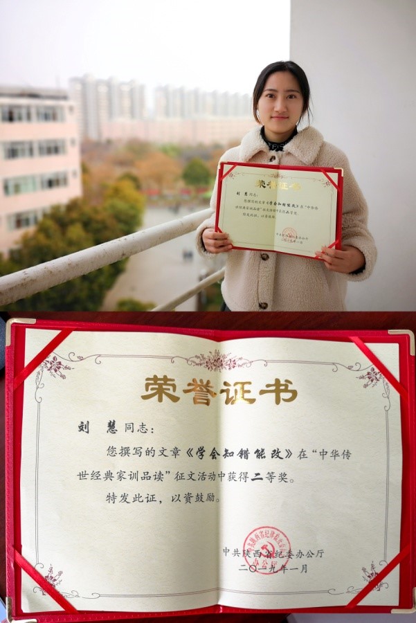 近日,省纪委秦风网公布了“中华传世经典家训品读”征文获奖名单,beat365官网教育学院学前教育一班刘慧同学的《学会知错能改》一文荣获二等奖。