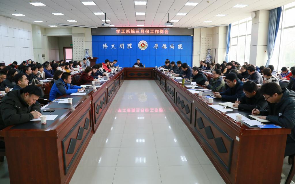 学工部(处)部长冯森对2018年学生工作进行了总结,安排了三月份学生工作,并对重点工作进行了强调;研究生工作部部长赵天绪安排了近期研究生教育管理和招生等工作;招生就业处处长李周让安排了三月份毕业生就业工作;校研究生会主席韩婷、校学生会副主席杨士琛汇报了开学初学生的思想、学习和生活情况,就学生反映的问题向相关单位进行了通报。