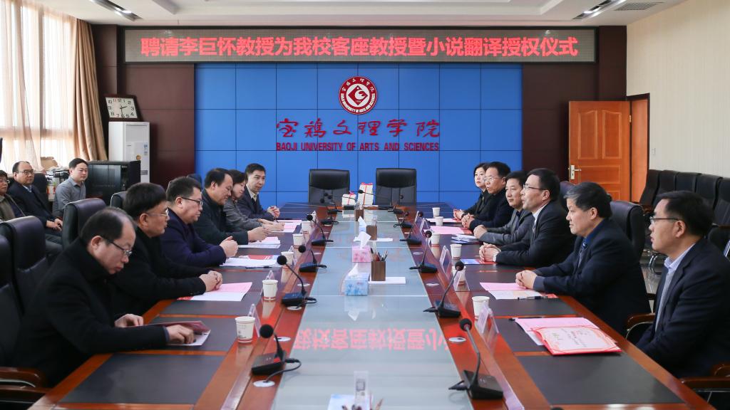 会上,郭霄鹏对李巨怀先生在beat365官网创大迫切需要人才的关键时期受聘为beat365官网兼职教授表示热烈欢迎和衷心感谢,对授权beat365官网外国语学院翻译《书房沟》小说在锻炼队伍、促进发展和传播周秦文化的积极作用予以肯定。他要求外国语学院、人事处、学研处、社科处等相关部门通力合作,做好服务,充分利用好发挥好李巨怀先生在教学科研、学科建设、青年教师培养和硕士点申报等方面的积极作用。