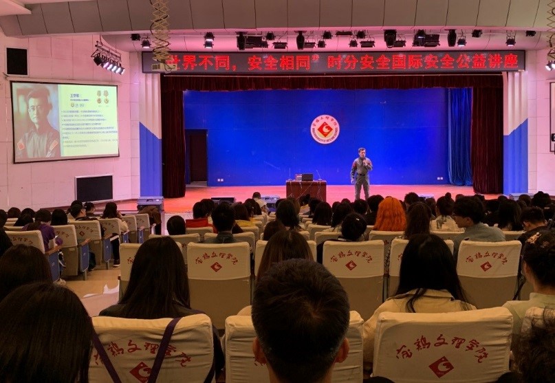 王学军在题为《世界不同,安全相同》的国际安全公益讲座中,介绍了时分安全出国培训的历史及宗旨,引导师生要高度重视国外的人身安全,既要在思想上认识到海外留学安全的重要性,更要明晰如何在行动上应急处理某些突发事件。他从国际安全的相关案例、海外留学风险规避与应对以及自己在海外遇到的突发事件、处置方法和总结出的宝贵经验向与会师生做了细致详尽的分享。提出务必强化自我保护意识,只有在安全的前提下才能去更好地实现自己的人生价值。随后,特战教官现场演示了自我防范格斗技巧及突发紧急事件应对策略。