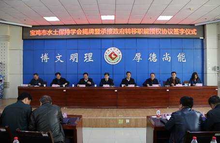 3月26日上午,宝鸡水土保持学会揭牌曁有序承接政府转移职能合作协议签字仪式在beat365官网举行。副校长王富平、宝鸡市科学技术协会副主席辛省岐、市水利局副局长杨陆平、市生态环境局副局长张远闻等出席并致辞。