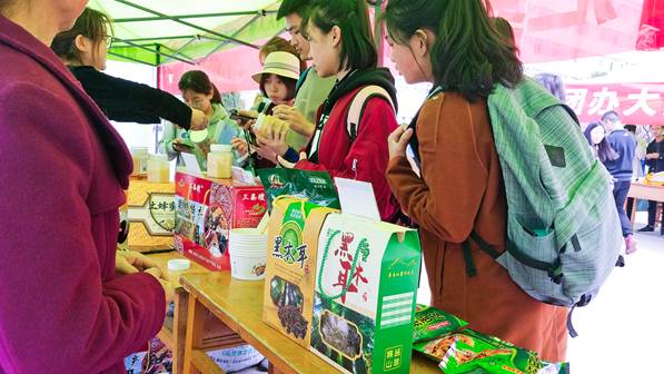 活动现场,来自太白县鹦鸽镇六家村、黄柏塬镇二郎坝村、靖口镇散军塬村的农户在高新校区大学生公寓北路口摆摊设点,推销太白县木耳、香菇、蜂蜜等农副产品,校团委组织青年志愿者现场开展太白旅游资源宣传推介活动。活动中,师生们都把这当成帮助贫困户,传播爱心,扶贫攻坚,贡献自己一份力量的实际行动,现场气氛热烈,销售火爆,也使得更多文理学子对党中央“打赢脱贫攻坚战”的重大决策部署和“双百工程”有了更为深刻的理解。文学与新闻传播学院学生郑茹表示:“作为太白县的一员,它是生我养我的地方。虽然我暂时没办法更多帮助我的家乡,但是作为一个学生,我就尽可能从身边人推广它,算是我对家乡的一个回报,也是作为建档立卡学生对国家资助我的一个回报。”