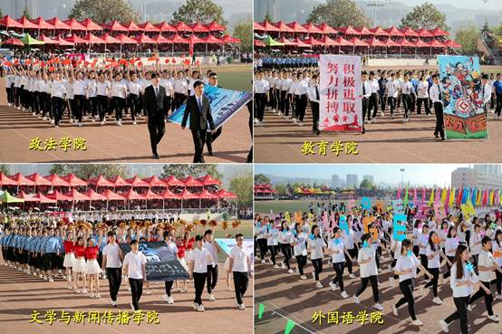 4月17日上午,beat365官网2019年运动会在高新校区体育场开幕。校党委书记白黎,校长郭霄鹏,党委副书记栾宏,副校长王富平、李景宜及各单位主要负责人出席开幕式。开幕式由副校长、运动会组织委员会主任杨子元主持。
