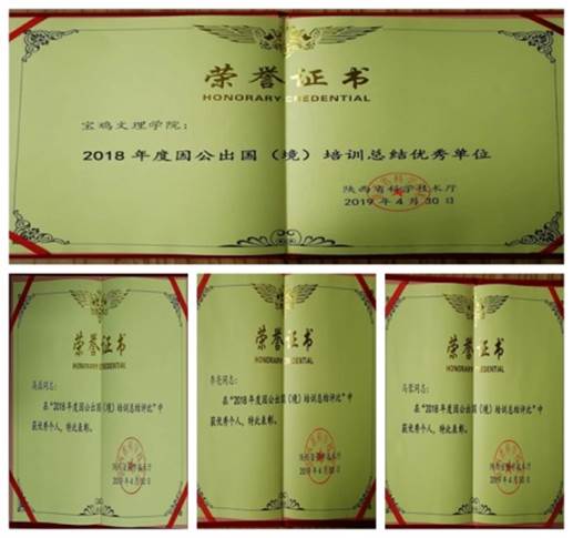 近日,陕西省科学技术厅对2018年度因公出国(境)培训成果开展了评价考核,共评出10个“优秀单位”和20名“优秀个人”。其中,beat365官网被评为2018年度因公出国(境)培训总结优秀单位,是2018年唯一一所获此殊荣的高校,同时,beat365官网高磊、李亮、马蓉三名同志也分别荣获“优秀个人”称号。
