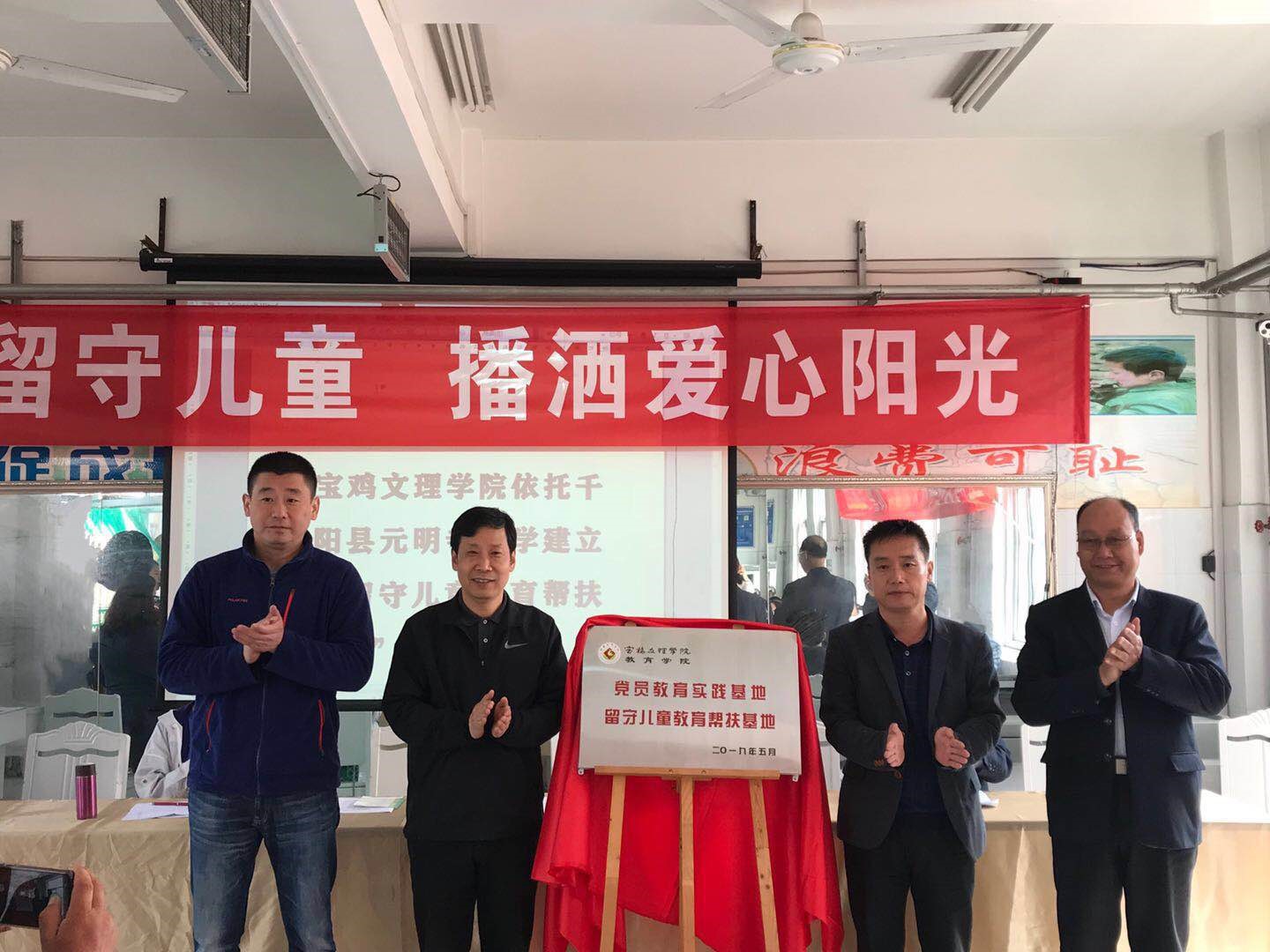 5月8日上午,教育学院党总支书记白晓旭、院长茹宗志带领部分师生党员赴千阳县城关镇元明寺小学举行“留守儿童教育帮扶基地暨党员教育实践基地”挂牌仪式并开展“关爱留守儿童”志愿帮扶活动。