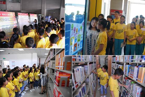 在高新校区图书馆,小学生们被大学浓厚的学习氛围深深感染,兴奋的吵闹声顿时变得鸦雀无声。志愿者为小学生们详细介绍了图书馆的基本情况和电子书网上借阅流程、电子图书查阅操作方法,并带领他们参观了书库和阅览室。小学生们完全沉浸在书的海洋中,在感受高校文化氛围的同时,也点亮了他们努力读书、逐梦远航的灯塔。