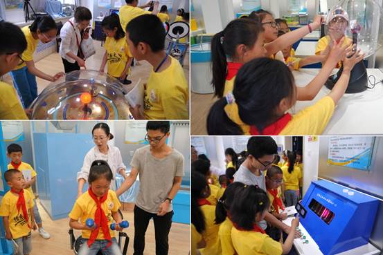 在石鼓校区,小学生们参观了中学物理演示实验室,通过聆听大学生志愿者对声、光、力、热、电、磁物理实验的讲解和亲身体验,对自然界的常见物理现象有了更加直观的认识和了解,同时也激发了他们学习科学、探索自然奥秘的兴趣。