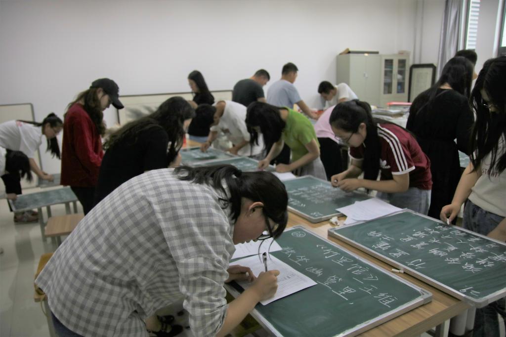 各学院参赛选手准备充分,或挥毫泼墨,或力透纸背,神情认真专注,一幅幅作品跃然纸上。粉笔字工整秀丽、笔画呼应,钢笔字结构严谨、骨力开张,毛笔字遒劲有力、行云流水。