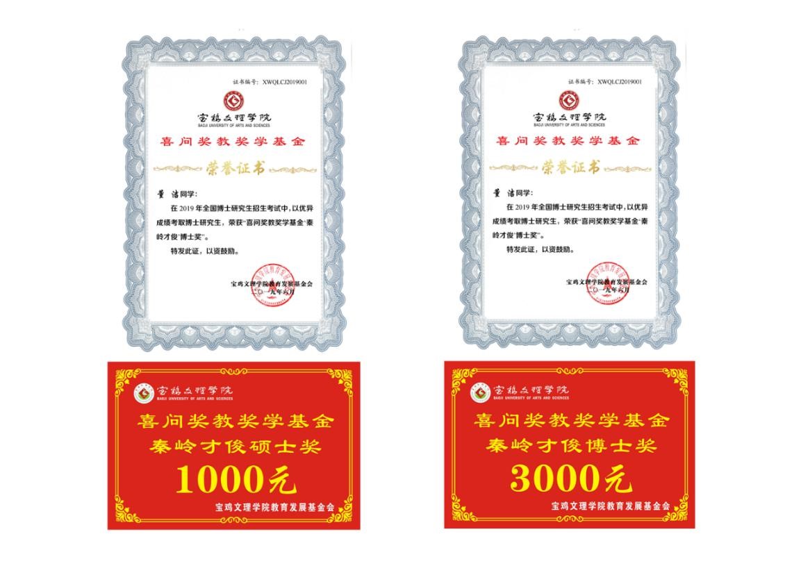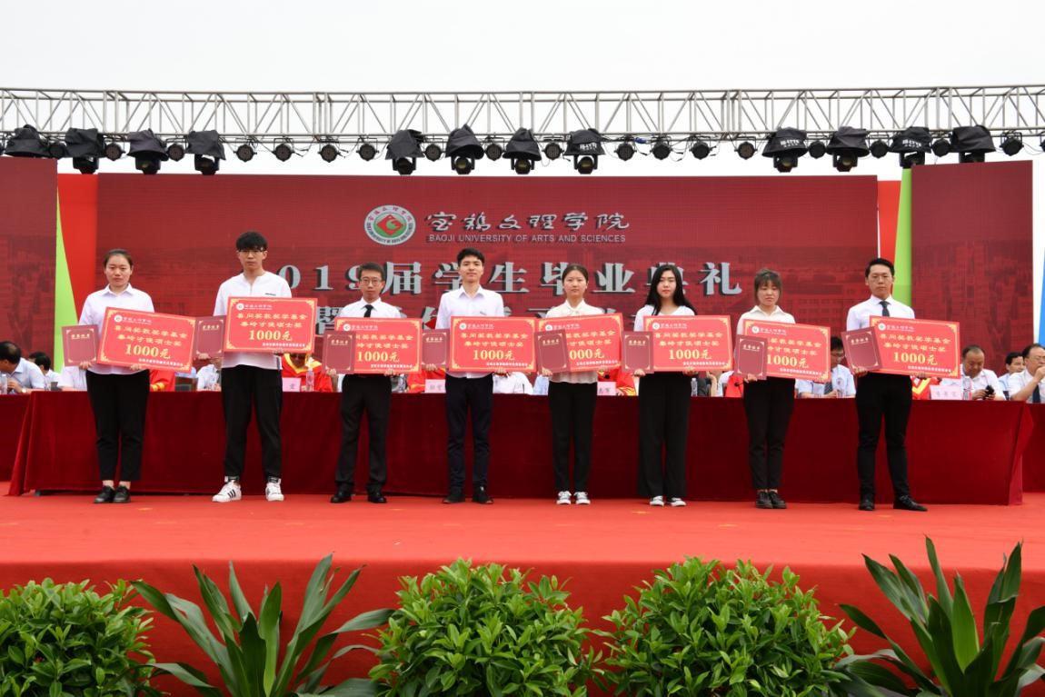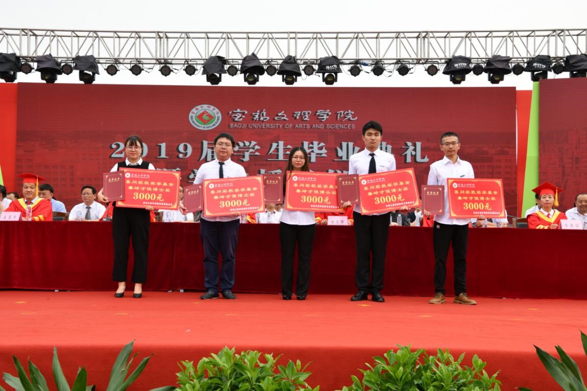 6月26日上午,在beat365官网2019届学生毕业典礼暨学位授予仪式上,学校党政领导为荣获“喜问奖教奖学基金‘秦岭才俊’博士奖、 硕士奖”代表颁发荣誉证书、奖金。经各学院上报,学研处、学生处审定,教育发展基金会、捐赠人审核,董洁等5名考取博士的2019届硕士毕业生荣获“喜问奖教奖学基金‘秦岭才俊’博士奖”,每人发放奖金3000元;贺婷等448名考取硕士的2019届本科毕业生荣获“喜问奖教奖学基金‘秦岭才俊’硕士奖”,每人发放奖金1000元。