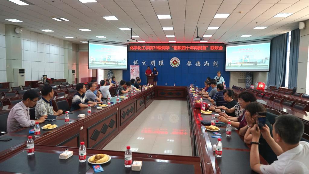 联欢会上,校友们集体观看了化学化工学院党委书记陈强制作的《四年同窗情 情系四十载》视频,回顾了四年大学生活中的感人故事和成长经历,开展了才艺互动表演和座谈交流。校级教学督导、原化学系79级辅导员张来新深情回忆了校友当年在校的学习生活情况,并对校友未来工作生活送上美好的祝福。化学系79级班长刘宗杰代表校友感谢恩师谆谆教诲,感谢母校教育培养,对母校近年来的飞速发展和巨大变化表示由衷的赞叹,对母校取得的巨大成就感到无比自豪,表示将继续关心母校、宣传母校、支持母校,祝愿母校明天更美好,早日实现宝大梦。