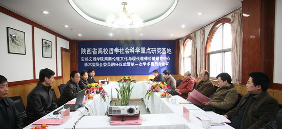 聘任仪式结束后,学术委员会会议主任、院长王志刚主持召开了第一届学术委员会会议。周秦基地主任王兴尚向专家们汇报了中心的工作。专家们就社科基地的发展规划进了认真的讨论,他们认为beat365在线唯一官网周秦伦理文化与现代道德价值研究中心具有明显的特色和优势,近年来取得了比较好的研究成果,通过进一步的发展壮大,一定会成为西北地区乃至全国周秦伦理文化研究的重镇。