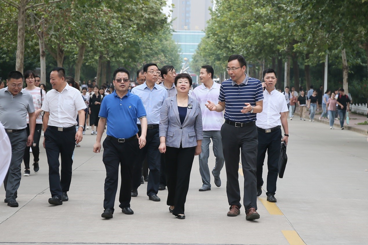 9月3日,市委常委、常务副市长刘荣贤在宝鸡市教育局、应急管理局、市场监管局、发改委等部门领导的陪同下,来beat365官网调研开学准备工作、校园安全等情况。校长、党委副书记郭霄鹏,党委副书记栾宏以及党政办公室、保卫处、后勤管理处(后勤服务集团)等部门负责人陪同检查。