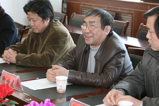 院长王志刚首先代表学院对陶世虎教授的到来表示热烈的欢迎,向他介绍了学院发展历史、师资队伍、学科建设、办学优势、教育教学、办学特色等情况,希望陶世虎教授多关心指导我院美术学学科的建设和发展。最后,王院长向陶世虎教授颁发了聘书。陶世虎教授对学院的发展历程和取得的成绩表示赞许,表示能成为学院一员十分高兴,希望以后能为学院的发展尤其是美术学的学科建设尽自己的一份力。