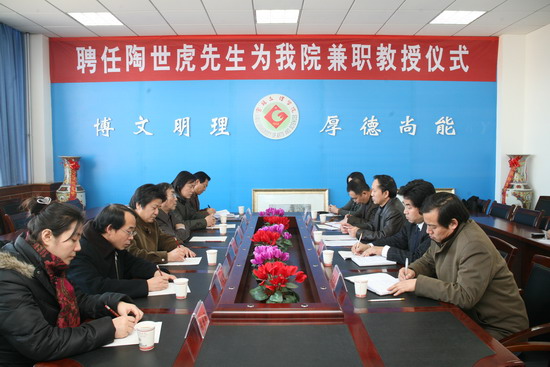 1月12日下午,学院在新校区第一会议室举行了聘请青岛大学陶世虎教授为我院兼职教授仪式。仪式由科技处处长吴毅主持。