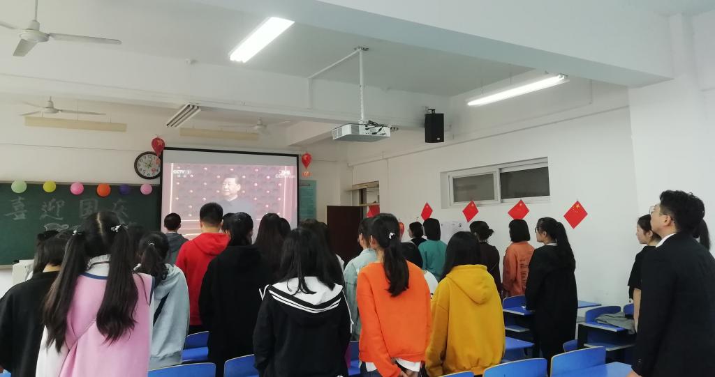 10月1日上午,庆祝中华人民共和国成立70周年大会在北京天安门广场隆重举行,中共中央总书记、国家主席、中央军委主席习近平发表重要讲话并检阅受阅部队。学校党委组织师生收看了大会直播,学习习近平总书记重要讲话精神,为伟大祖国送上深深的祝福。