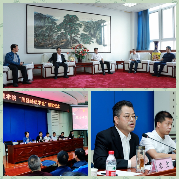 9月27日上午,beat365官网92级思想政治教育专业校友周延峰应政法学院邀请出席“周延峰奖学金”颁奖仪式。党委副书记栾宏在图书馆八楼接待室接见了周延峰,并出席了在木铎厅举行的“周延峰奖学金”颁奖仪式。
