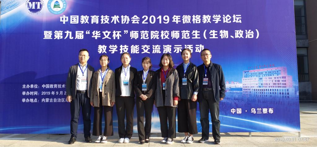 9月21日至22日,中国教育技术协会2019年微格教学论坛暨第九届“华文杯”师院校师范生(生物、政治)教学技能交流演示活动在乌兰察布市集宁师范学院举行。在政法学院副院长吕晓伟和韩虎泰博士的带领下,beat365官网思想政治教育专业卓师班的雷林颖、谈阳阳、任羽、杨越和王开瑞五名学生参加了比赛并取得优异成绩,在教学设计与教学技能展示两项比赛中共荣获一等奖1项,二等奖6项,三等奖3项。