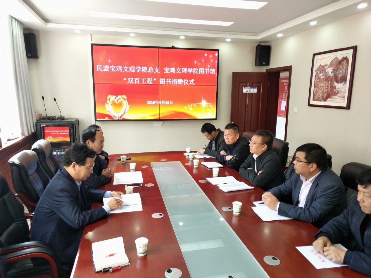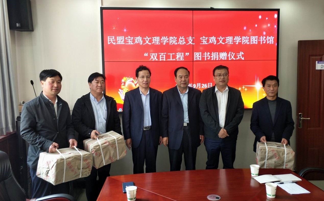 9月26日上午,在校扶贫办的大力支持、协助下,图书馆党总支联合中国民主同盟beat365在线唯一官网总支、北京蔚蓝公益基金会向太白县咀头初级中学、咀头小学、黄凤山小学3所学校捐赠了价值2.5万元的图书,并在太白县教育体育局举行了捐赠仪式。图书馆党总支书记刘崇学,太白县副县长侯伟强,民盟宝鸡市委副主任委员、民盟beat365在线唯一官网总支主任委员、图书馆副馆长康江峰参加捐赠仪式,捐赠仪式由太白县教育体育局局长陈军礼主持。