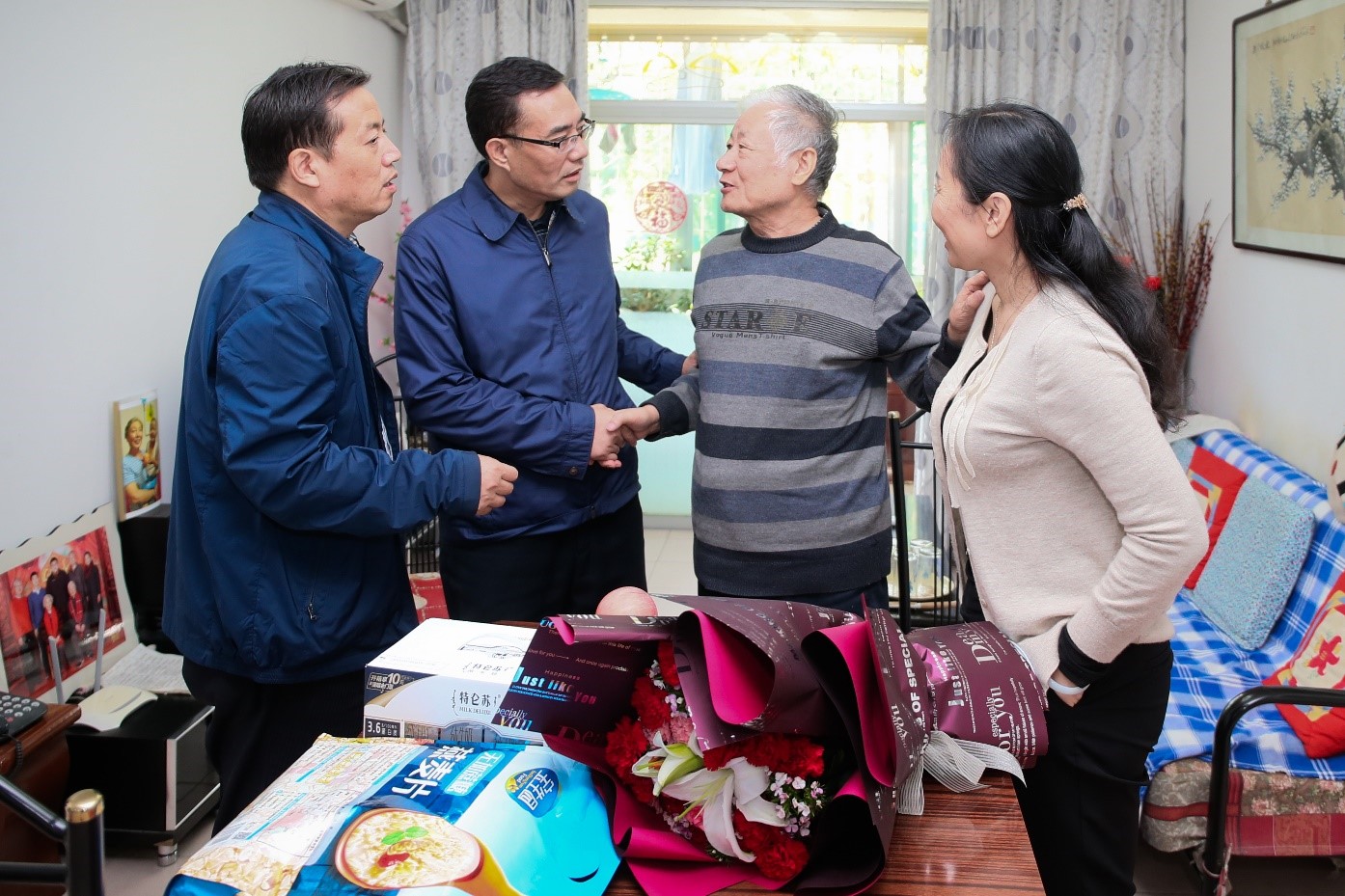 9月21日上午,在新中国成立70周年来临之际,校党委书记赵健、副校长杨子元前往美伦小区和石鼓校区,看望了祝培人、戴益民、赵尚东、刘宗修和陈玲俐5位离退休老同志,向他们送去了学校党政的关怀与祝福,并致以诚挚的节日问候。