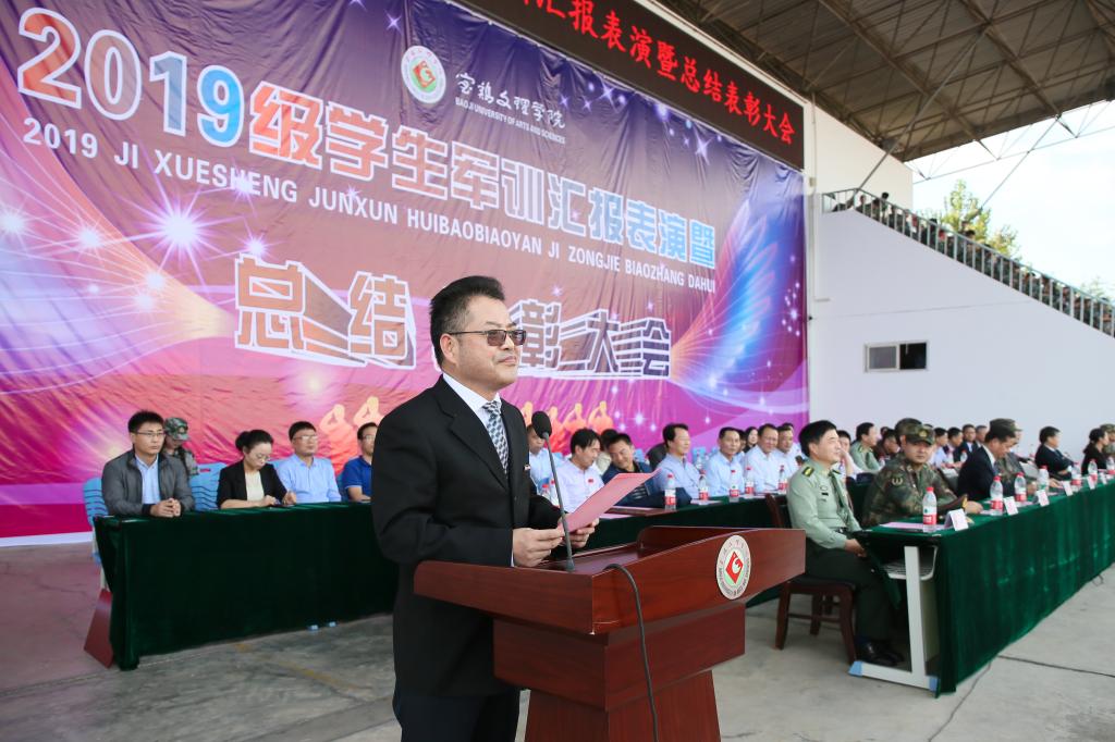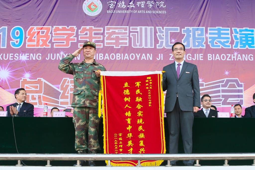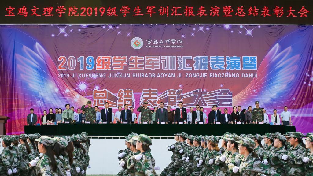 9月20日下午,beat365官网2019级学生军训汇报表演暨总结表彰大会在高新校区体育场举行。校党委书记赵健、校长郭霄鹏、党委副书记栾宏、副校长王富平、纪委书记段恒春、副校长李景宜以及中国人民解放军96607部队副参谋长牛玉民大校、苏旭中校,中国人民解放军96872部队副团长李海庆中校出席大会并在主席台就座。各二级学院党政领导、相关职能部门负责人、2019级全体本科学生以及军训团全体干部参加了大会。大会由副校长杨子元主持。