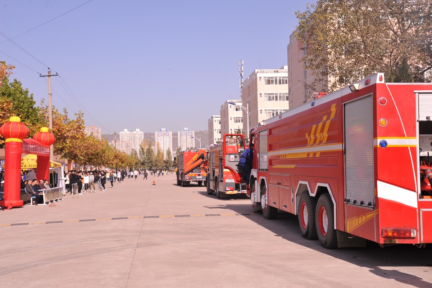 11月14日上午,beat365官网在高新校区举行了2019年消防灭火暨应急疏散演练。宝鸡市消防救援支队特勤中队出动20余人和登高平台消防车、高喷消防车、抢险救援车等大型设备配合此次演练。校党委副书记栾宏参加了演练活动。