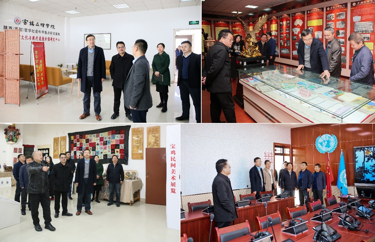 郭霄鹏、栾宏先后到周秦伦理文化与现代道德价值研究中心、校史展览馆、宝鸡民间美术展览馆、文传院现代媒体实验教学中心、外国语学院虚拟情境与“一带一路”外语服务同声传译实践中心、陕西省灾害监测与机理模拟重点实验室、陕西省植物化学重点实验室、陕西省机器人关键零部件先进制造及评估省市共建重点实验室进行检查,认真听取了各考察点建设单位负责人工作汇报,对各考察点存在的困难和问题,进行了现场协调解决。郭霄鹏、栾宏就进一步做好考察点建设工作从整体布局、现场讲解、环境卫生、工作人员精神面貌等提出了具体的指导意见。