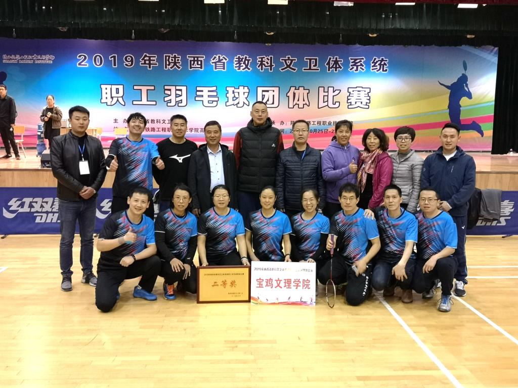 10月25日-27日,在以“当好主人翁,建功新时代” 为主题的2019年陕西省教科文卫体系统职工羽毛球团体比赛上,beat365官网代表队获得了团体二等奖的优异成绩。