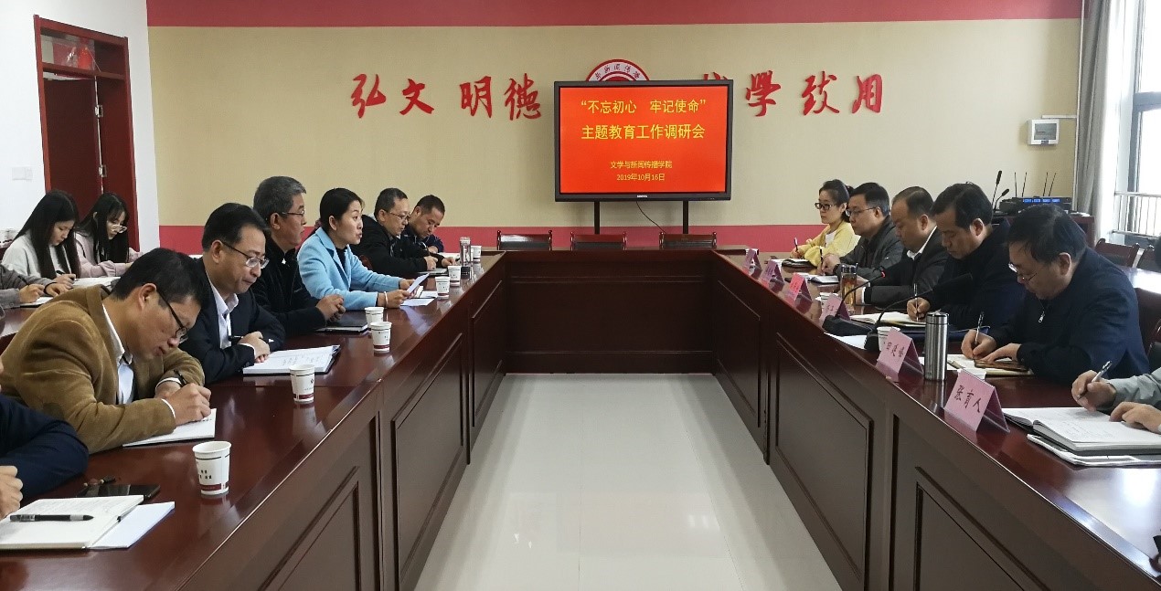 10月16日,副校长杨子元在教务实验室管理党支部书记、教务处处长田延峰和教学质量监控与评估中心主任刘景世的陪同下前往文学与新闻传播学院、音乐学院开展“不忘初心、牢记使命”主题教育工作调研,调研主要采取座谈会的形式进行,会议由教务处处长田延峰主持。