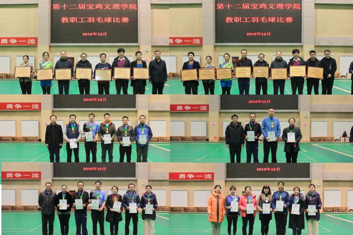 最终,经过多轮角逐,数学与信息科学学院/行政二、电子电气工程学院、外国语学院发挥出色,分别获得混合团体比赛冠军、亚军、季军;行政一/行政三、音乐学院、后勤集团、历史文化与旅游学院、党群二分会获得第四至第八名;羽球接龙团体前三名分别由体育学院、电子电气工程学院、行政一/行政三分会获得。单项比赛中,王力/薛锋堂、段恒春/樊晓仑、任慧琴/王烈琴、王力/马巧梅分获男双甲组、男双乙组、女双、混合双打的冠军。