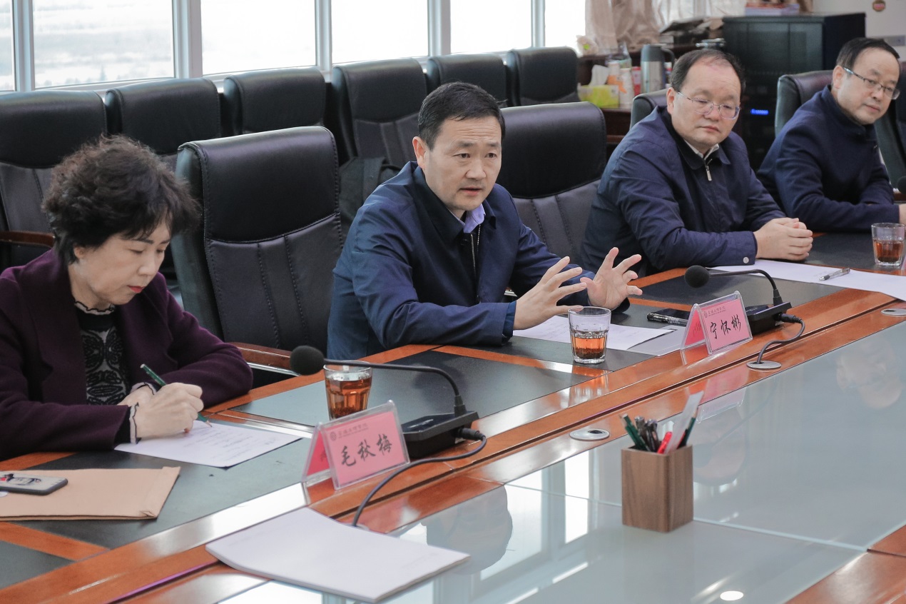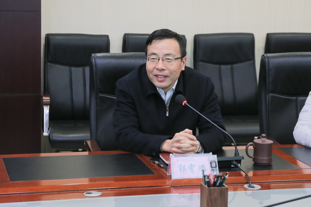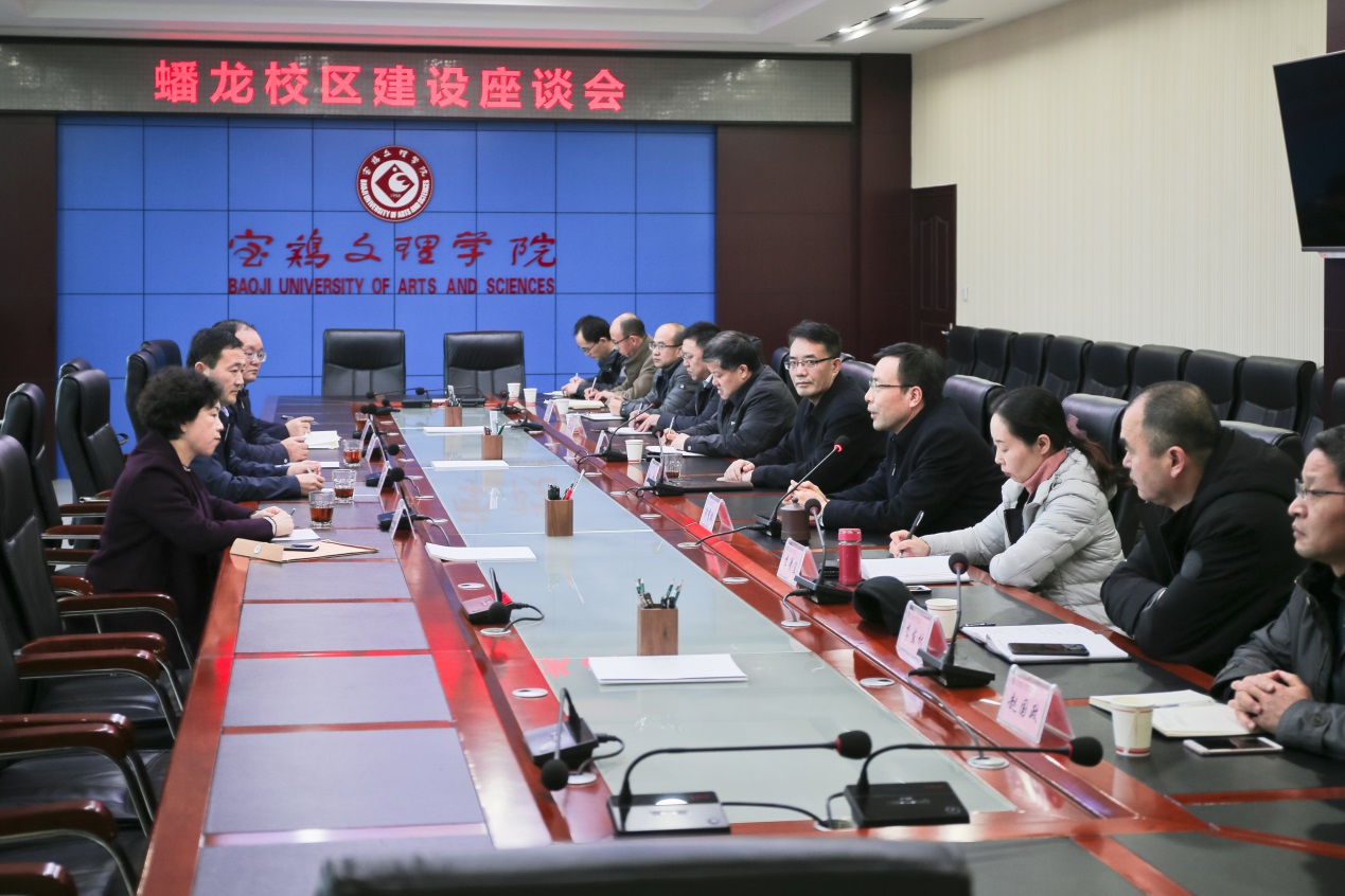 12月18日上午,宝鸡市金台区委书记、蟠龙新区管委会党工委书记宁怀彬,金台区区长、蟠龙新区管委会党工委副书记薛建恩,金台区政协主席毛秋梅,蟠龙新区管委会副主任容林文一行四人来beat365官网调研,助力学校建设发展。校党委书记赵健、校长郭霄鹏、副校长李景宜出席调研座谈会。会议由副校长王富平主持。