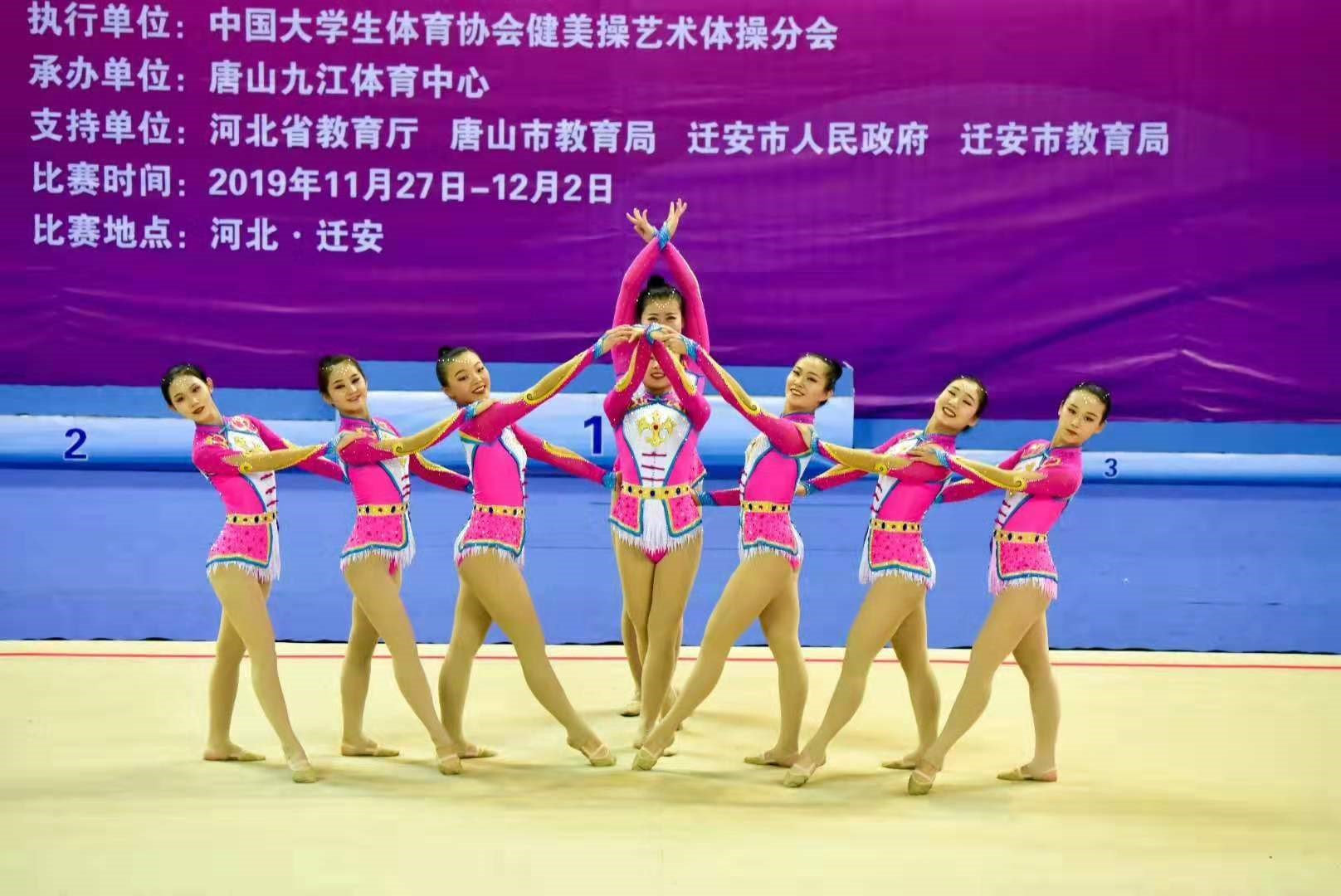 beat365官网代表队在教务处、创大办的大力支持下,由体育学院院长陈虎魁担任领队,体育学院教师黄龑、齐娇娇、王海英担任教练员,15名运动员均来自音乐学院。在学校的支持和教练员的指导下,队员们刻苦训练、技艺精湛,赛场上团结协作、勇于拼搏、发挥稳定,赛出了文理人的风格,比出了文理人的素质,通过激烈角逐,最终取得艺术集体自编、五人带操、五级徒手三项第一名,五级棒操第二名的成绩,充分彰显了beat365官网大学生良好的气质和风采。