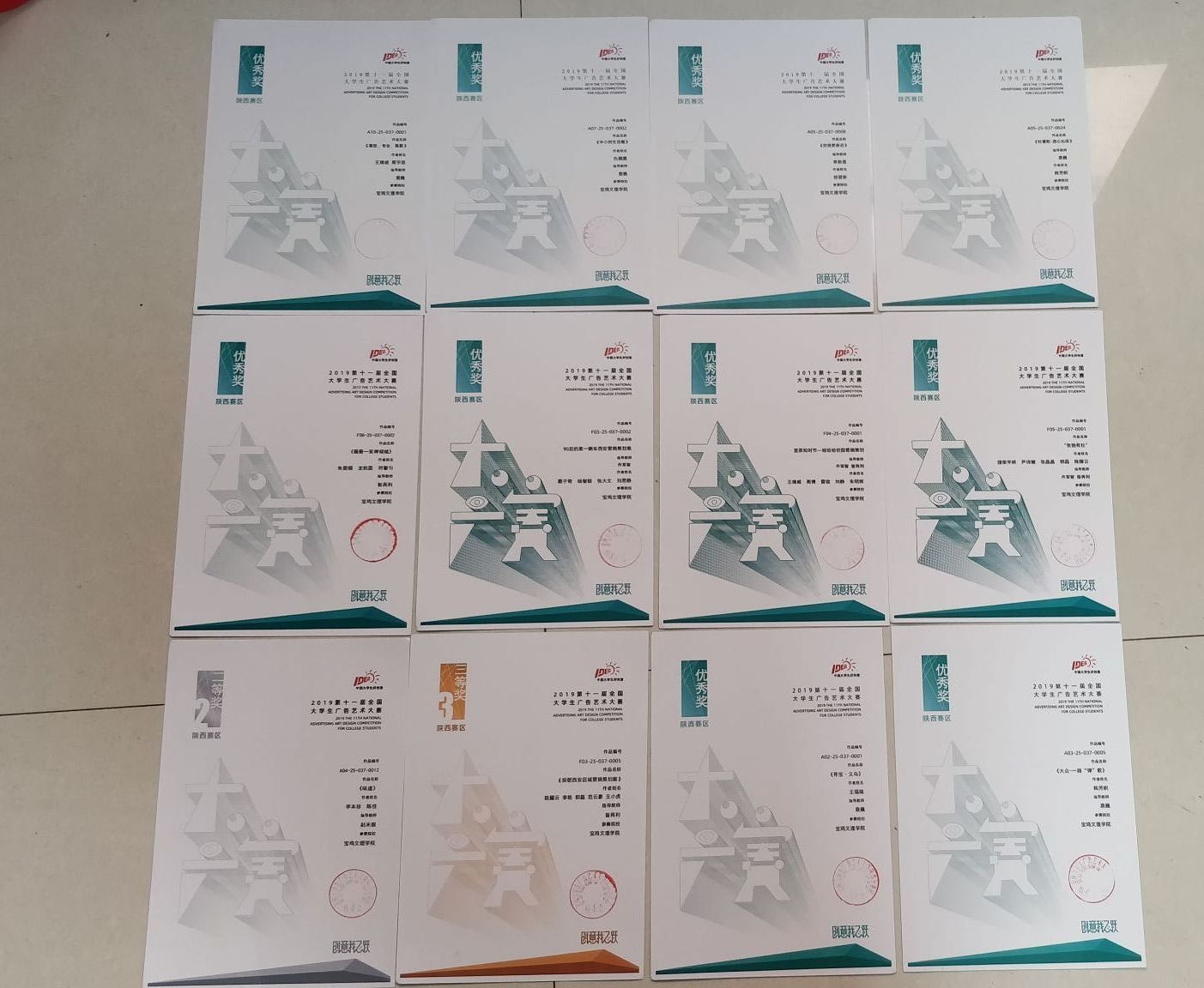 李本珍、陈佳同学创作的《味道》荣获二等奖;陈耀云、李艳、郭磊、范云豪、王小虎同学创作的《探歌西安区域营销策划案》荣获三等奖;朱茵铟、龙凯圆、符馨匀同学创作的《薇薇一笑婷倾城》,穆荣芊娇、尹诗慧、张晶晶、郭磊、陈耀云同学创作的《“张弛有杜”》,王靖威、周博、雷璇、刘静、朱明辉同学创作的《宜茶知时节—娃哈哈校园营销策划》,晏子奇、杨智聪、张大文、刘思静同学创作的《90后的第一辆车西安营销策划案》,王靖威、周宇辰同学创作的《高效、专业、高薪》,仇魏嘉同学创作的《半小时生活圈》,韩芳帜同学创作的《杜蕾斯–透心沁凉》《大众-一路“弹”歌 》,王福瑞同学创作的《寻宝·义乌》等分别荣获优秀奖。