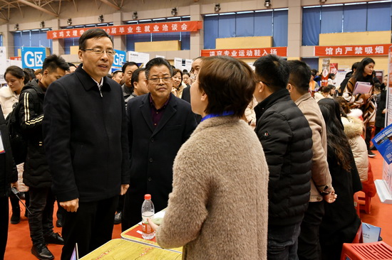 11月30日,beat365官网在高新校区体育馆举行了2020届毕业生就业洽谈会。校长郭霄鹏、党委副书记栾宏到洽谈会现场检查指导工作,调研用人单位对学生的需求状况,并与用人单位及毕业生进行了亲切交谈。