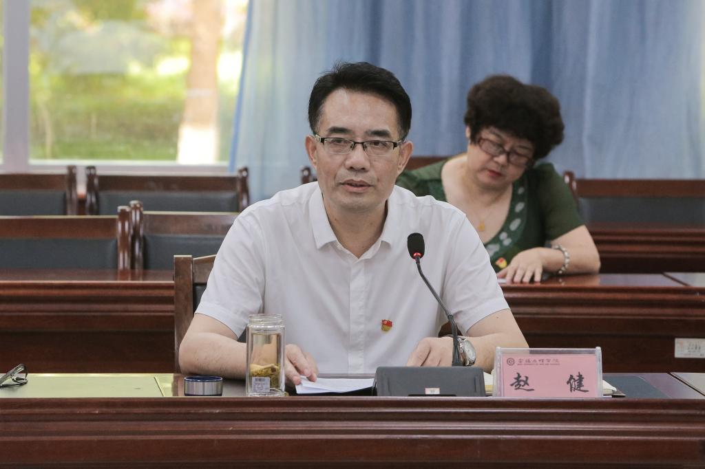 赵健代表校党委向在教学、科研、管理、服务和疫情防控各项工作中付出辛勤劳动的师生员工致以诚挚的感谢,向全校各级党组织和全体共产党员致以节日的问候。他与大家一起回顾了中国共产党成立99周年来特别是党的十八大以来领导中国人民所取得的辉煌成绩。他强调,我们党走过的99年光辉历程雄辩地证明,中国共产党不愧为中国人民的领导核心,不愧为中华民族伟大复兴的中流砥柱。他结合学校实际,对全校各级党组织和全体党员提出了五点要求和希望:一要旗帜鲜明讲政治,坚决把政治建设摆在首位,切实提高政治站位,始终对党忠诚老实,牢固树立“四个意识”、坚定“四个自信”、做到“两个维护”,为学校的建设发展提供坚强的政治保证。二要坚定理想信念,牢牢抓住理想信念这个关键,深入学习贯彻习近平新时代中国特色社会主义思想,始终保持对远大理想和奋斗目标的执着追求,坚定不移地做共产主义远大理想和中国特色社会主义共同理想的坚定信仰者、忠实实践者。三要坚守为民初心,自觉践行共产党员“四讲四有”标准,把事关“立德树人”根本任务的各项工作做扎实、做细致、做到位,以实际行动为学校建设与发展贡献智慧与力量。四要勇于担当实干,坚定对学校事业发展的信心和决心,主动适应新时代高等教育发展的新挑战、新要求,聚焦重点难点,积极担当作为、主动改革创新、抢抓发展机遇,以钉钉子精神狠抓各项工作的落实,示范带动广大师生员工一起干,推动学校各项事业高质量发展。五要推进全面从严治党向纵深发展,主动适应全面从严治党的新形势、新任务,勇于直面问题,敢于刀刃向内,把严的要求贯彻管党治党全过程,不断增强党内政治生活的政治性、时代性、原则性、战斗性,营造风清气正的良好政治生态。
