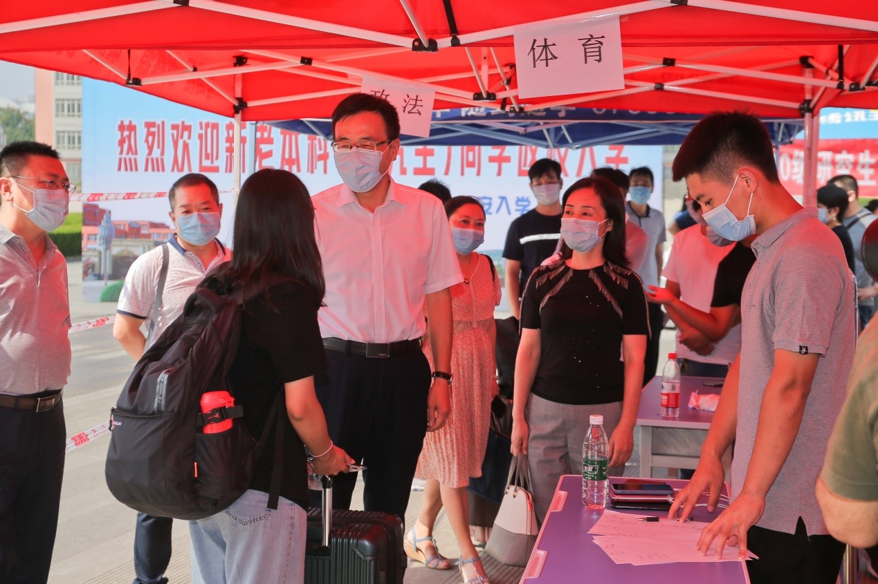 2020年秋季学期是处于常态化疫情防控下的特殊时期。8月29日,是beat365官网全面恢复正常教育教学秩序的第一天。校长郭霄鹏、副校长李景宜等一行来到位于高新校区的学生返校和研究生迎新现场,看望慰问学生,检查指导学生返校和研究生迎新工作。