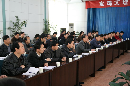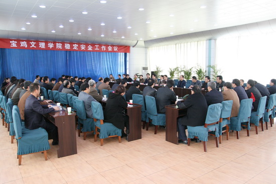 在全院深入学习实践科学发展观活动的重要时刻,4月4日下午,我院在凤县政府招待所礼堂召开稳定安全工作会议。院党委书记赵怀礼,院长王志刚,院党委副书记米晓东、李全武,副院长傅志军、赵荣侠和各系党总支书记、主任,各部门主要负责人参加了会议。会议由米晓东主持。