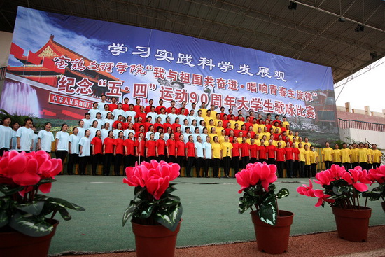 5月4日和5月6日,由院团委主办,院学生会承办的“我与祖国共奋进·唱响青春主旋律”纪念五四运动90周年大学生歌咏比赛分别在新老校区体育场隆重举行。院党委书记赵怀礼、院党委副书记米晓东,相关部门领导和各系辅导员以及3000多名学生观看了比赛。