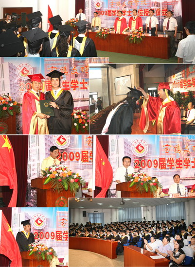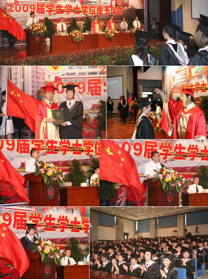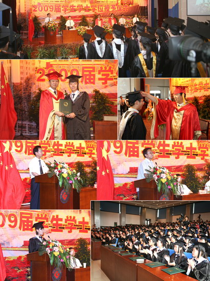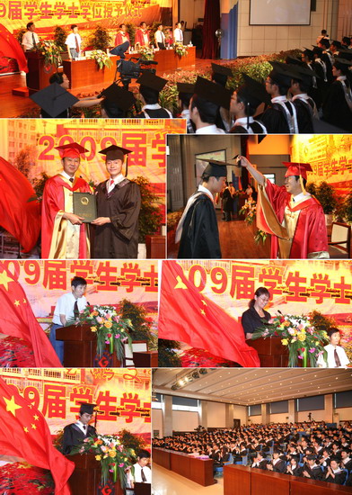 王志刚为毕业生颁发了学士学位证书。傅志军、赵荣侠分别为全院17个系的的毕业生扶正流苏、整帽拨冗。杨子元主持学士学位授予仪式。各系党总支书记主持学位证书颁发仪式。