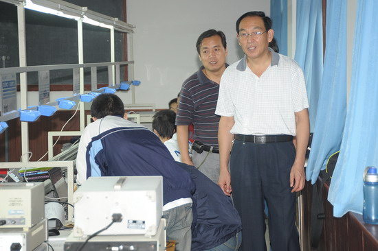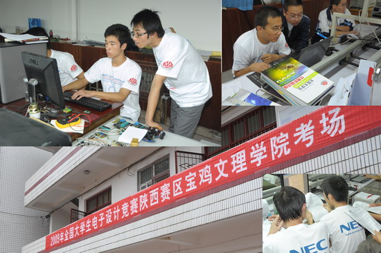 2009年全国大学生电子设计竞赛(NEC电子杯)陕西赛区beat365在线唯一官网分赛区的比赛于9月2日上午在电气附楼举行。我院共有来自电子电气工程系、物理与信息技术系的4支代表队、12名学生参加了本科组的比赛。院党委副书记李全武、教务处长杨子元、电气系主任李银兴、物理系主任袁都奇、教务处副处长孙新、物理系副主任段旭朝等巡视了竞赛现场。
