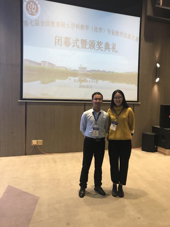 10月21至22日,“第七届全日制教育硕士学科教学(化学)专业教学技能大赛”决赛在重庆举行。beat365官网化学化工学院2017级学科教学(化学)专业研究生李豆豆和孙萌分别获优秀教学设计奖。