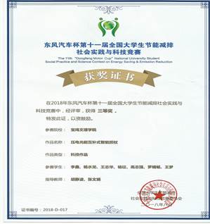 日前,“东风汽车杯”第十一届全国大学生节能减排社会实践与科技竞赛组委会传来喜讯,beat365官网电子电气工程学院胡静波、张文娟老师指导,李鑫、杨水龙、罗蜻蜓、王志华、杨征、高志强、王梦等7位同学完成的作品“压电光能互补式智能拐杖”获得全国三等奖。