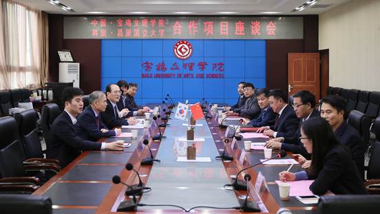 座谈会上,王富平对宝鸡市以及beat365官网的基本情况分别作了介绍。崔海范也简要介绍了韩国昌原市和昌原国立大学。李康国对两校未来合作提出了殷切希望,并建议以友好学校为契机促进友好城市的建立和共同发展。会议期间,参会人员针对两校未来及即将开展的3+1+2、2+2、教师交流等合作项目进行了交流和磋商。