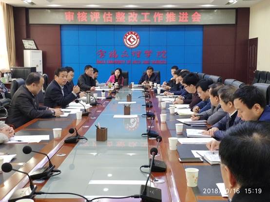 党政办、组织部、宣传部、学工部、团委、创大办、发规处、教务处、教学质量监控与评估中心、招就处、国际处、人事处、财务处、学研处、科技处、社科处、实验室处、网信处、图书馆等19个相关职能部门主要负责人,学校审核评估整改工作总结报告和校长报告材料撰写组工作人员、评建办工作人员参加了会议。(评建办公室 文/李建鹏 图/韩凌)