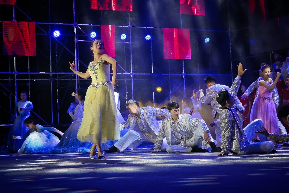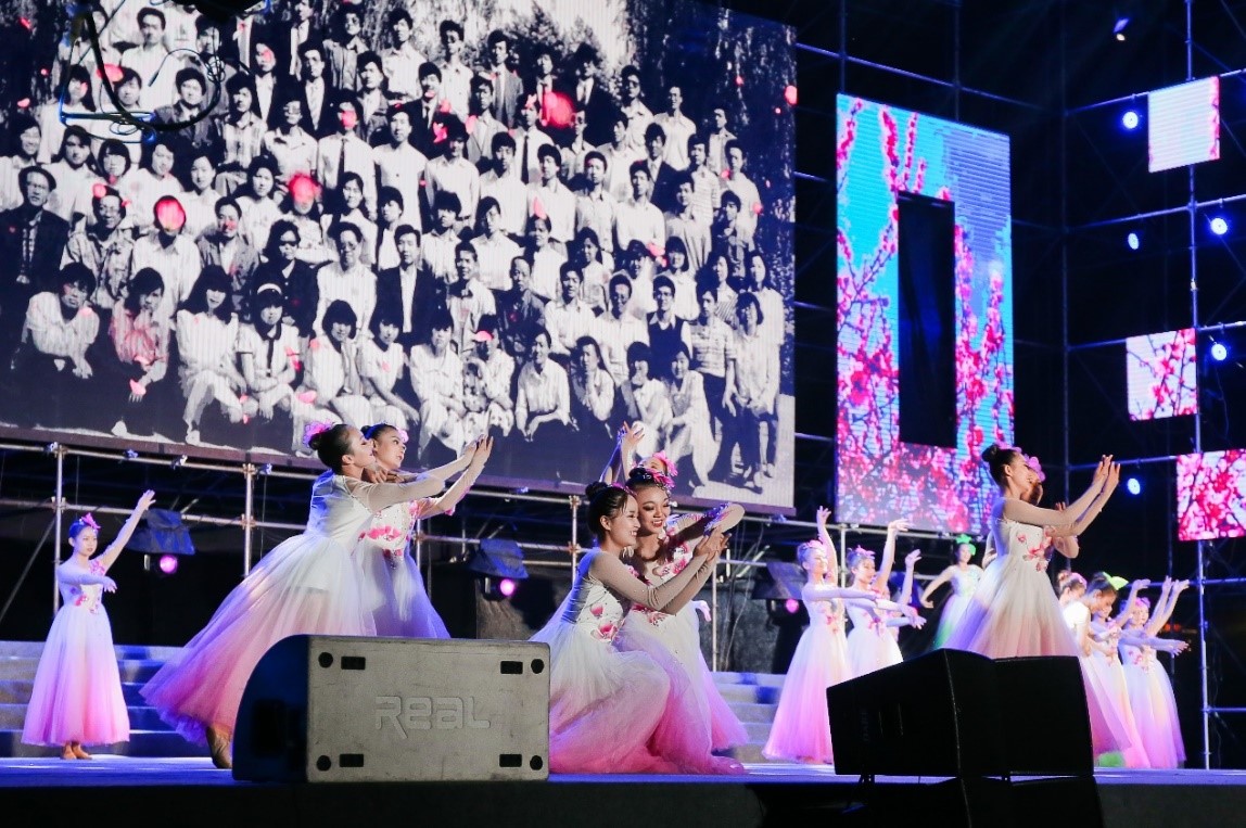 群舞《桃李芬芳》刻画了一代代文理人筚路蓝缕、栉风沐雨,书写了一部曲折与磨砺、开拓与奋斗、梦想与辉煌的生动历史画卷。