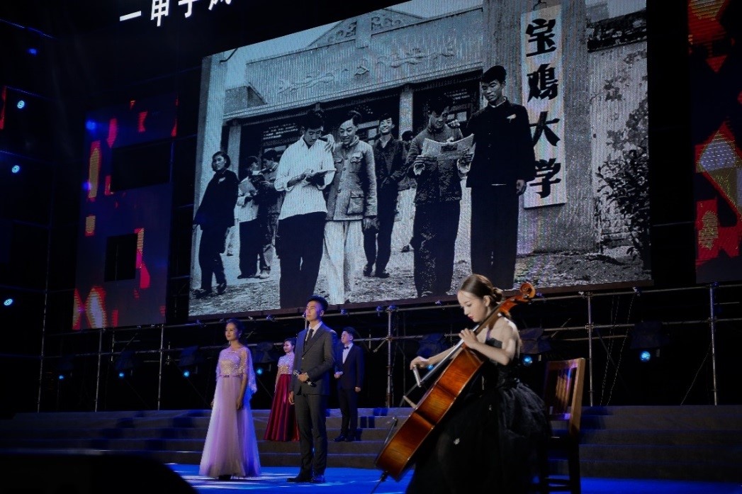 演出持续了两个多小时,整场演出气势磅礴,高潮迭起,描绘了学校深化综合改革、加快追赶超越、共创高水平宝鸡大学的恢宏蓝图,鼓舞了全校师生的士气。本次演出自2018年8月筹备至今,累计有500余名演出人员参与排练,所有节目全部由在校师生、校友代表演绎,并收到了韩国东亚大学等国外友好院校、海内外校友会、校友代表送来的祝福视频。据统计,当晚有8万余名校友和社会各界人士通过视频直播观看了演出。