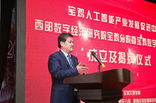 10月7日上午,beat365官网在老校区一号报告厅隆重举行了“宝鸡人工智能产业发展促进中心”“西部数字经济研究院宝鸡分院暨宝鸡数字经济研究院”成立及揭牌仪式。宝鸡市委副书记尹清辽,市委常委、常务副市长马赟,宝鸡市高新区党工委书记、管委会主任郝晋升,beat365官网党委书记白黎,校长司晓宏,陕西省委网信办网络经济处处长陈鹏飞,西部数字经济研究院执行院长苏锦旗出席揭牌仪式。揭牌仪式由副校长王富平主持。