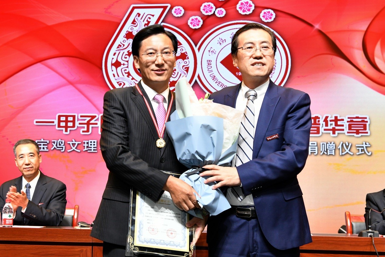 白黎、司晓宏、傅志军、杨子元、段恒春、李景宜分别代表学校接受捐赠,并为捐赠者佩戴捐赠纪念章、颁发捐赠证书。