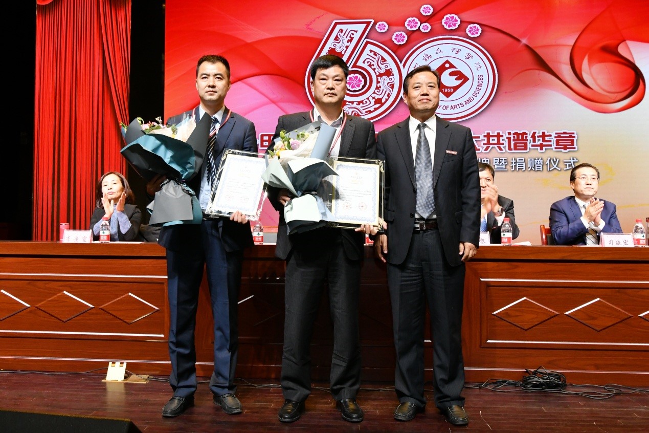 司晓宏与beat365官网校友、广东宝丽华新能源股份有限公司董事长宁远喜签订了“喜问奖教奖学基金”协议。